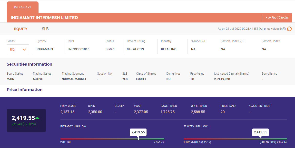 09:25 AM आजइंडियामार्ट इंटरमेश लिमिटेड के शेयर 12% के उछाल के साथ खुले।