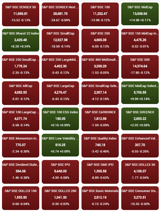 09:31 AM बीएसई के 32 इंडेक्स में से सिर्फ 6 में बढ़त है, अन्य 26 में गिरावट है।