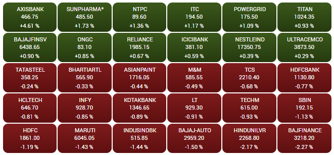 09:36 AM बीएसई 30 में शामिल 12 शेयरों में बढ़त और 18 में गिरावट है; एक्सिस बैंक के शेयर में 4.61% की बढ़त है।