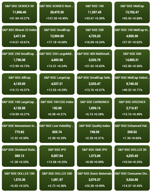 09:24 AM बीएसई के सभी 32 इंडेक्स आज बढ़त के साथ खुले हैं।