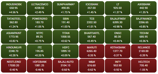 09:15 AM बीएसई 58.04 अंक ऊपर 38,550.99 पर और निफ्टी 24.35 पॉइंट ऊपर 11,324.90 पर कारोबार कर रहा है।