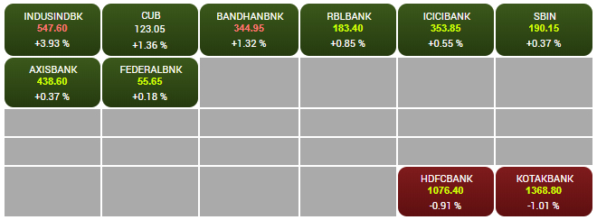 09:54 AM बीएसई बैंकिंग सेक्टर में शामिल 10 में से 8 बैंकों के शेयरों में बढ़त है; HDFC और कोटक बैंक के शेयर में गिरावट है।