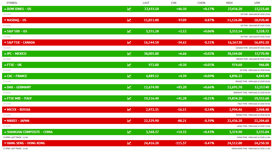 शुक्रवार को अमेरिकी बाजारों में उतार-चढ़ाव देखने को मिला था। अमेरिकी बाजार डाउ जोंस 0.17 फीसदी की बढ़त के साथ 46.50 अंक ऊपर 27,433.50 पर बंद हुआ था। वहीं, अमेरिका के दूसरे बाजार नैस्डैक 0.87 फीसदी गिरावट के साथ 97.09 अंक नीचे 11,011.00 पर बंद हुआ था। दूसरी तरफ, एसएंडपी 0.06 फीसदी बढ़त के साथ 2.12 पॉइंट ऊपर 3,351.28 पर बंद हुआ था।
