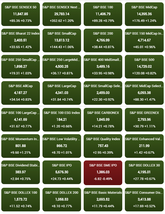 09:30 AM बीएसई के 23 सेक्टर में से अभी 22 में बढ़त बनी हुई है।
