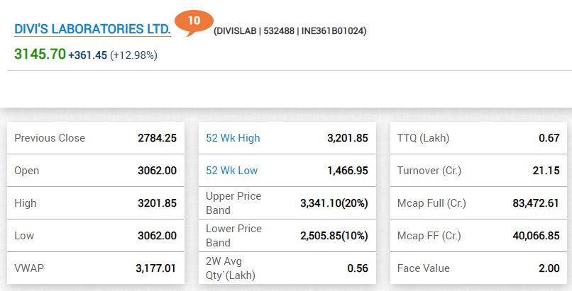 09:50 AM डिवीज लैबोरेटरीज लिमिटेड के शेयर में लगभग 13% का उछाल है। आज कंपनी के शेयर 3062 रुपए पर खुले।
