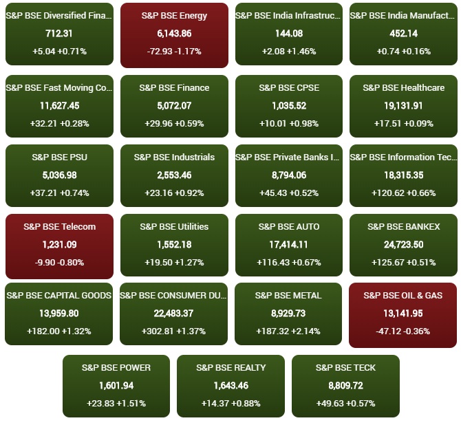 09:30 AM बीएसई के 23 सेक्टर में से 20 में बढ़त और 3 में गिरावट है।