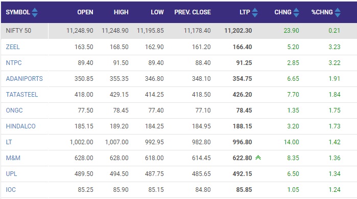 09:37 AM निफ्टी 50 के टॉप-10 गेनर स्टॉक्स; ZEEL और NTPC के शेयर में सबसे ज्यादा बढ़त है।